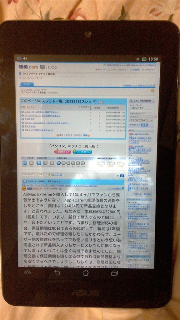 『浸水3日後、パネルの雲みたいなのは水』ASUS ASUS MeMO Pad 7 ME572CL SIMフリー LaMusiqueさんのクチコミ掲示板画像1/2
