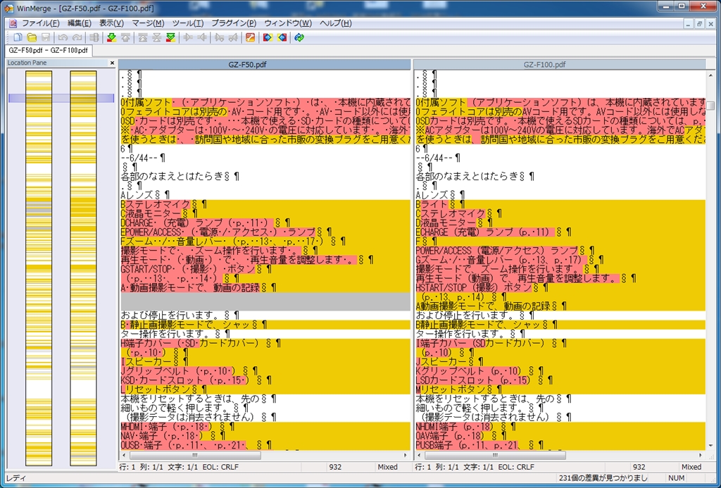 『相違点ファイルコンペア』JVC Everio GZ-F100 sumi_hobbyさんのクチコミ掲示板画像1/2