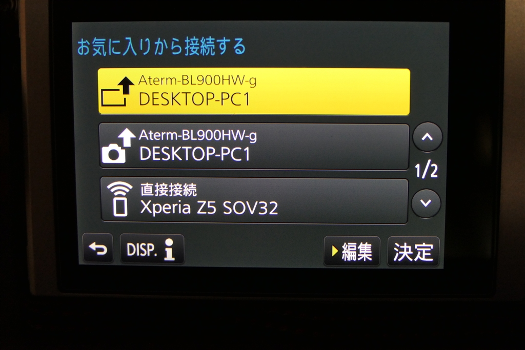 LUMIX のWi-Fi登録画面