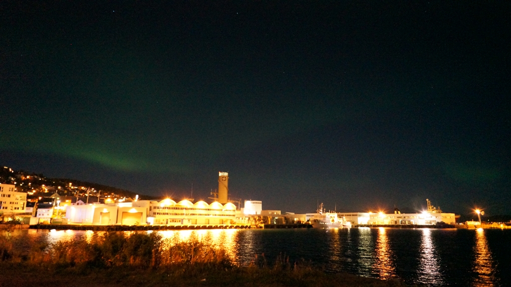 トロムソという港町で、港の建物を入れて撮影