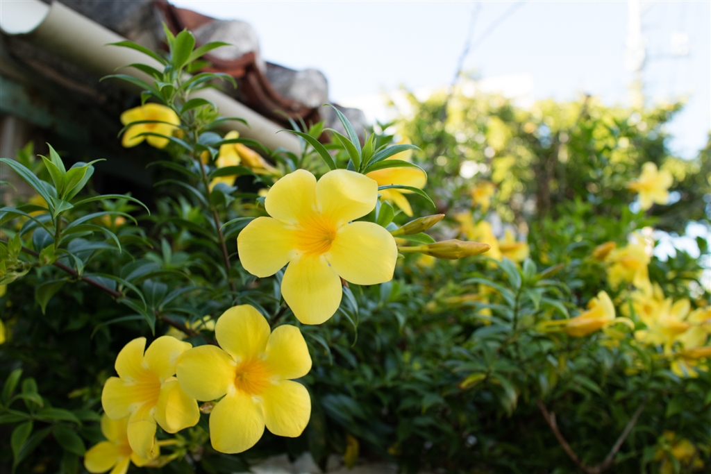 石垣の路地に咲く花