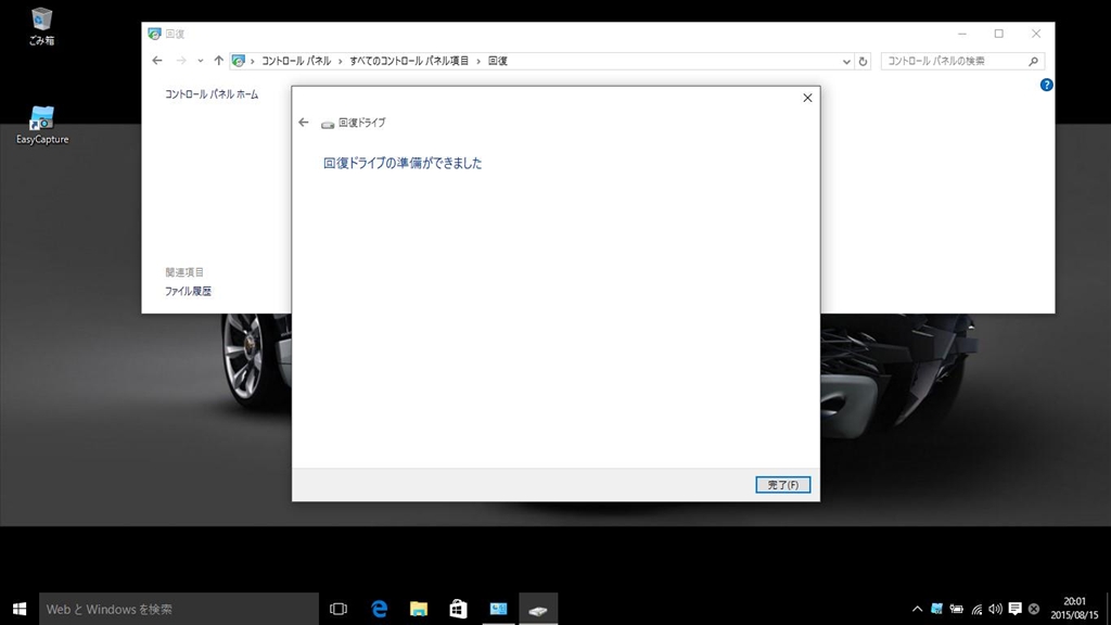 windows10用回復USBドライブ作成完了