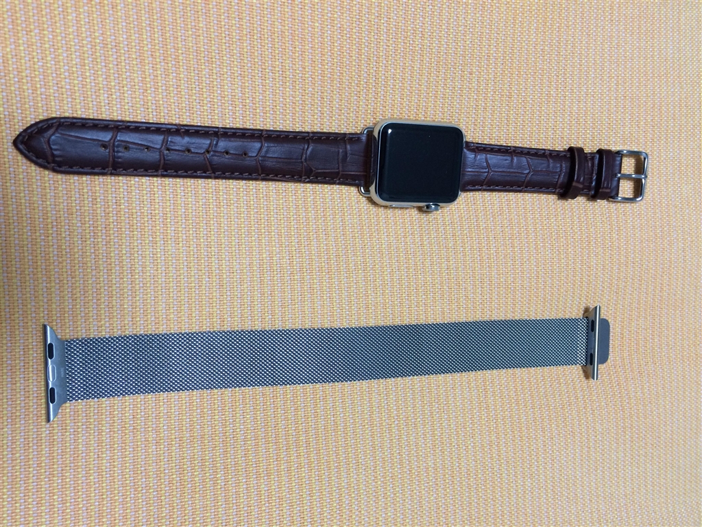 『購入したレザーバンドと外した状態のミラネーゼループ』Apple Apple Watch 38mm スポーツバンド あふぉ爺.comさんのクチコミ掲示板画像1/4