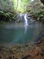 もう一つ撮影を試みたいのは、上の左の写真です。夏になると滝壺に子供が