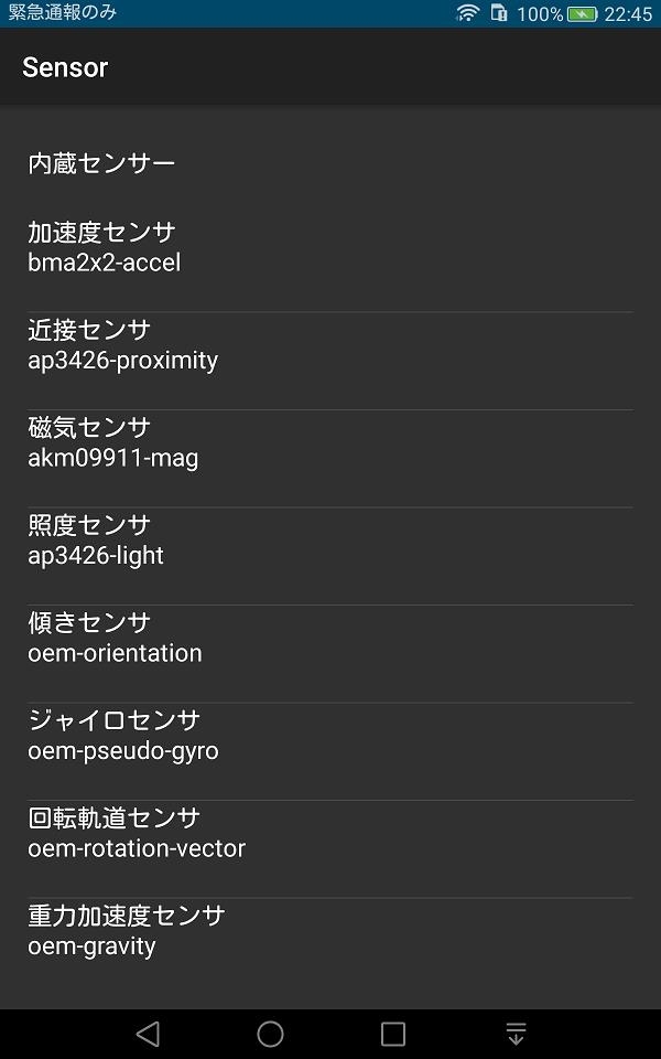 MediaPad T2 7.0 Pro 内蔵センサー