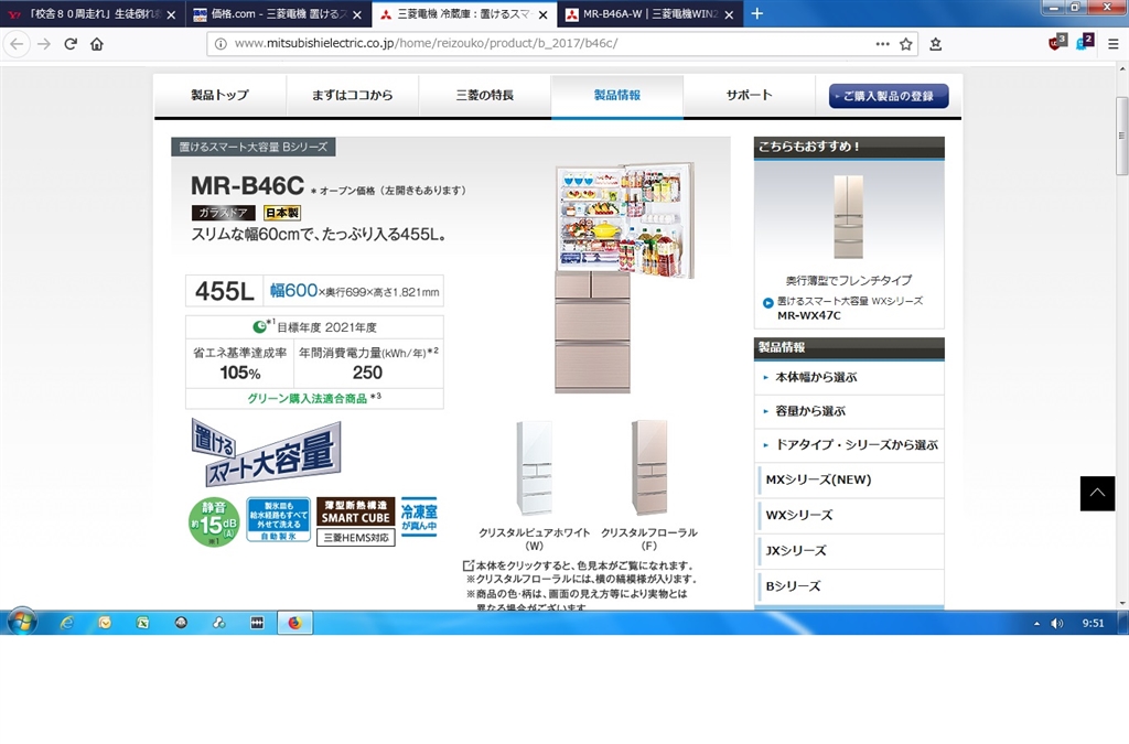 三菱電機 置けるスマート大容量 Bシリーズ MR-B46A 痛風友の会さんのクチコミ掲示板画像1/2