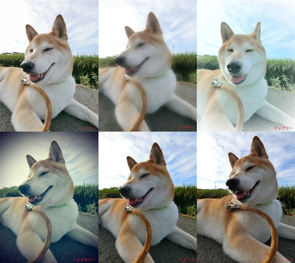 セルフィーアートモード一覧(右下がノーマル画像)