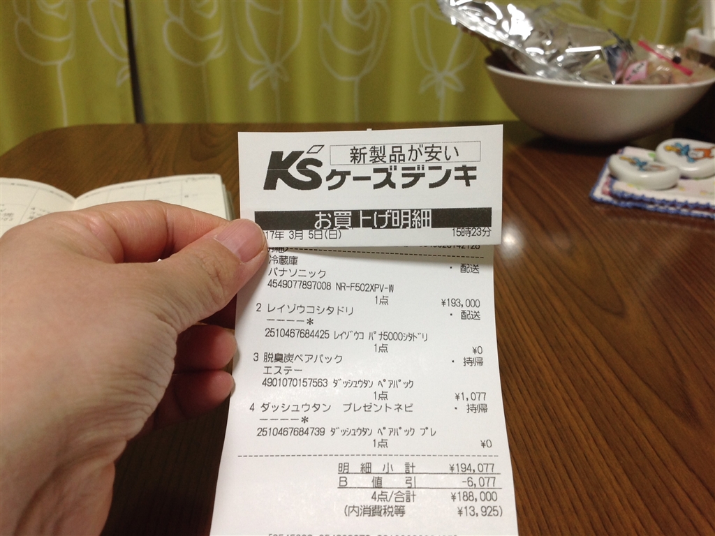 『レシートです。』パナソニック NR-F502XPV ごんちゃん201705さんのクチコミ掲示板画像1/1