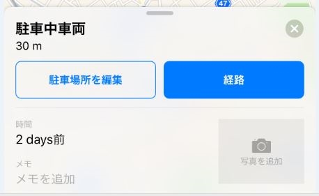 地図上の車の駐車場所