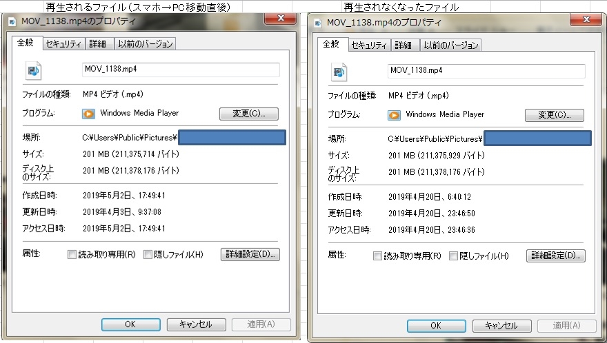 『ファイルのプロパティの比較』SONY Xperia XZs SO-03J docomo くりーむぱんださんのクチコミ掲示板画像1/1