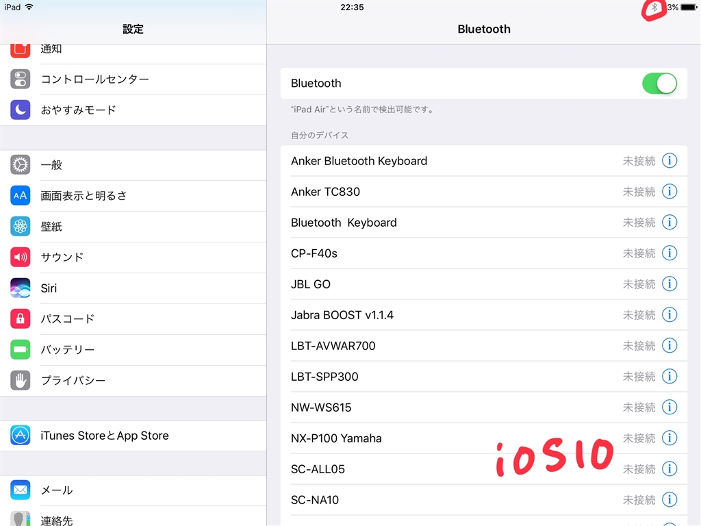 『iOSだと、BTオンでも、接続済み機器なしなら、灰色に。』Apple iPad Pro 10.5インチ Wi-Fi 256GB tanettyさんのクチコミ掲示板画像2/2