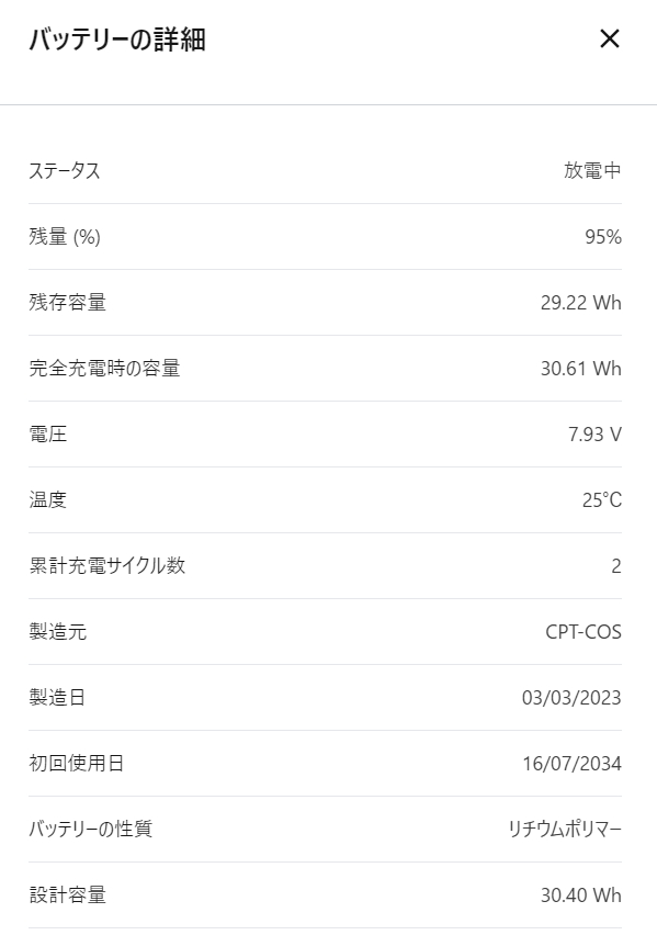 バッテリー詳細情報では特に異常がない