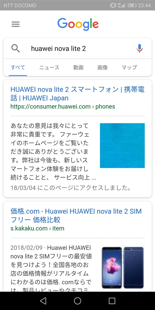 『ホーム画面スワイプ左の検索での画面』HUAWEI HUAWEI nova lite 2 SIMフリー さゆきんぽぽぽさんのクチコミ掲示板画像1/2