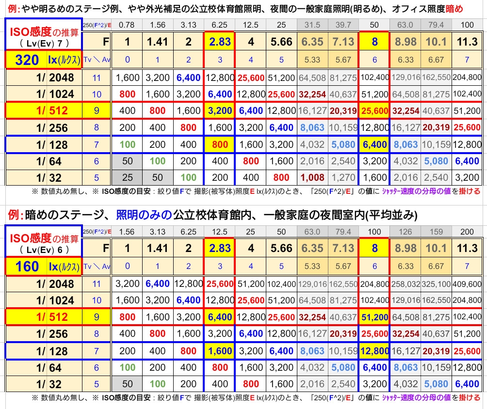 差し替え【室内】撮影条件例(上 : 320 lx例、下 : 160 lx例)