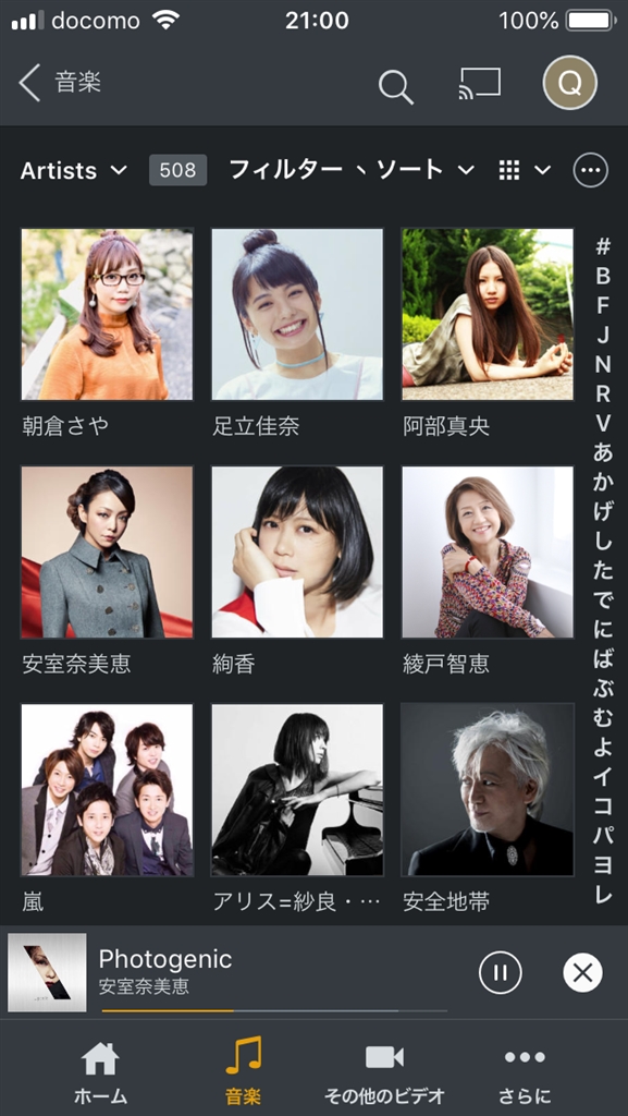 『アーティストを選ぶ画面』SONY h.ear go 2 SRS-HG10 tanettyさんのクチコミ掲示板画像1/4