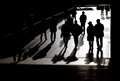 後ろ姿で一人二人を小さく入れると、脇役が主役 (街並) になるほどの面白さ。
