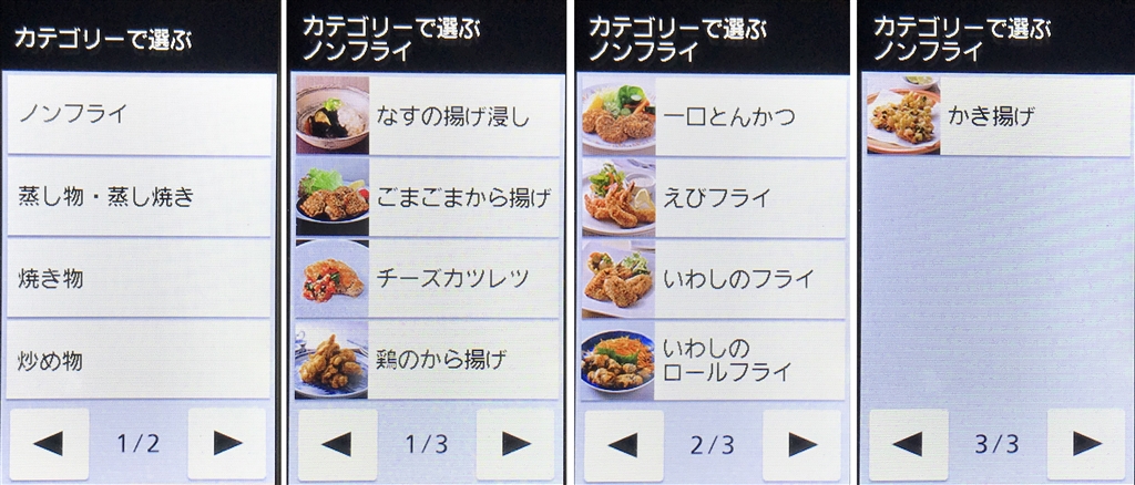 ノンフライメニュー画面