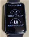 写真のとおり時間、心拍数、合計カロリー、トレーニング効果(有酸素トレーニング、無酸素トレーニング)が表示されます。