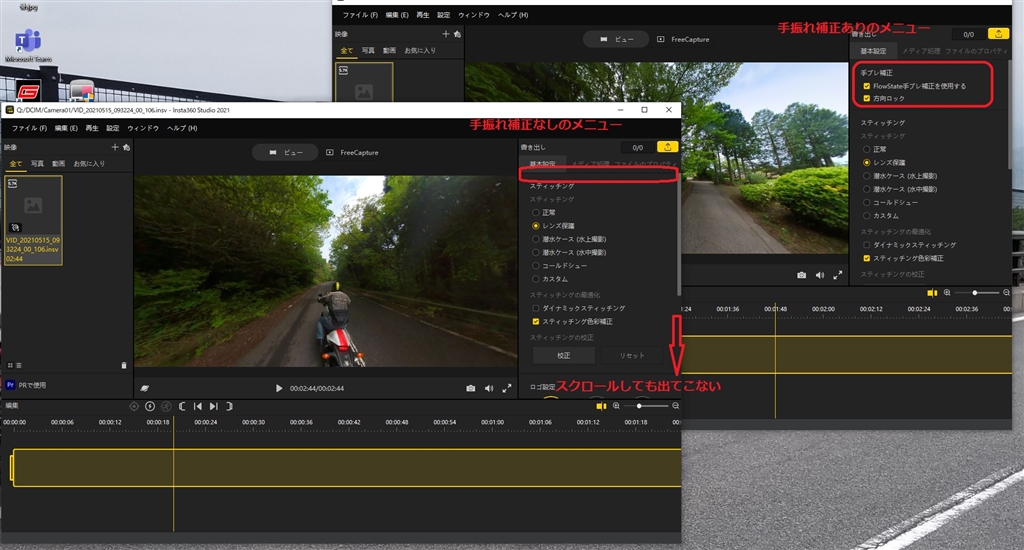 『ファイルにより補正モードがあるものないものがある。』Insta360 Insta360 ONE X2 kabevoさんのクチコミ掲示板画像1/2