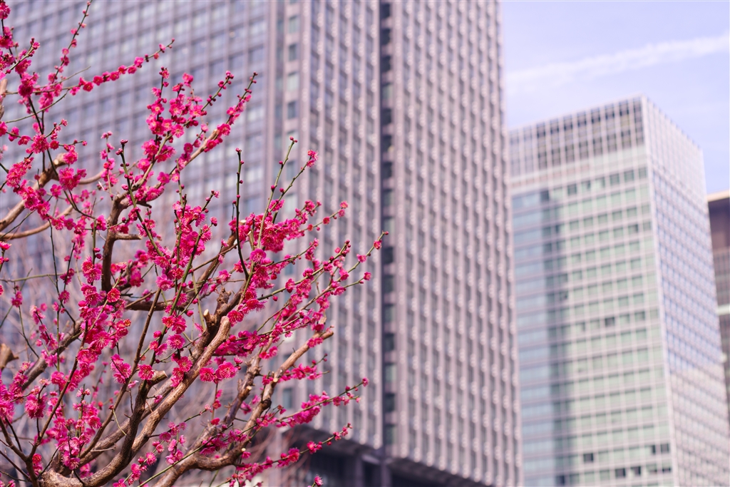 丸の内 駅前に紅梅が咲いてるんですね