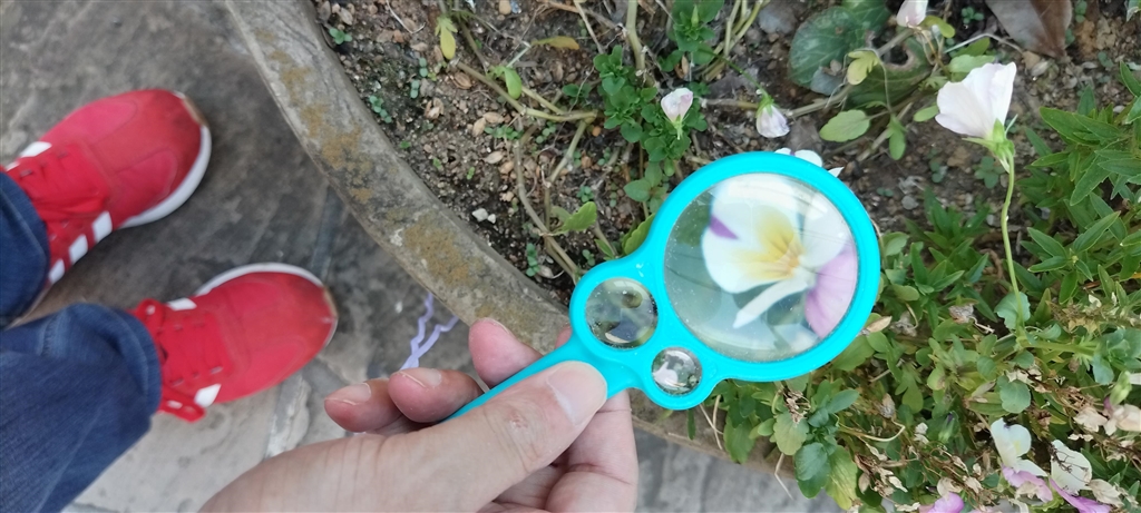 3.5倍レンズを花にかざすと周りより大きくなる