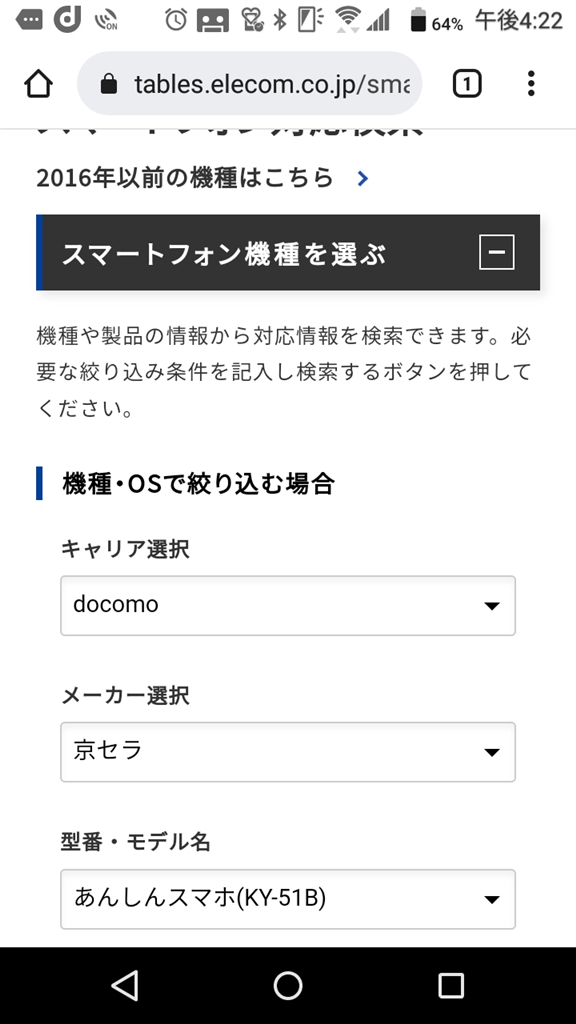 『エレコムの製品対応一覧』京セラ あんしんスマホ KY-51B docomo フルーツゼリー1226さんのクチコミ掲示板画像1/4