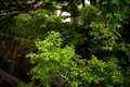 秋の紅葉を撮影した楓の木。春を迎え、一斉に芽吹き、瑞瑞しい若葉を纏って
