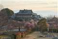 奈良県大和郡山市の郡山城跡から、梅の咲く風景。