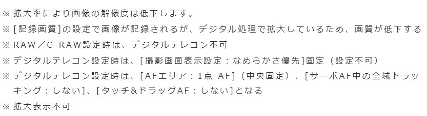 キヤノンのテレコン注意書き