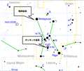 アップしたオリオン座の星図に馬頭星雲とオリオン大星雲の位置を記しましたが、馬頭星雲はオリオン座の斜め横に並んだ三つ星の一番左側の星付近にあります。オリオン大星雲は三星の下に縦に並んだ小三つ星の真ん中の星付近と言うか付近の星と一体になってます。また、馬頭星雲はシルエットとして浮かび上がる暗黒星雲であり、オリオン大星雲の様な付近の星の光を反射して光っている散光星雲ではありません。