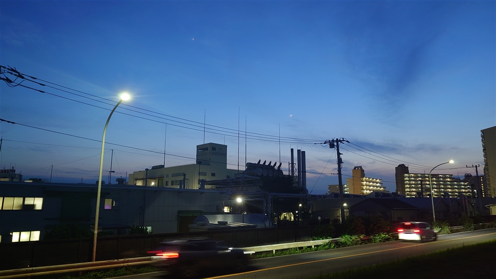 夕方にふらっと撮った写真です。月が写ってはいるんだけど、見えるかなぁ…