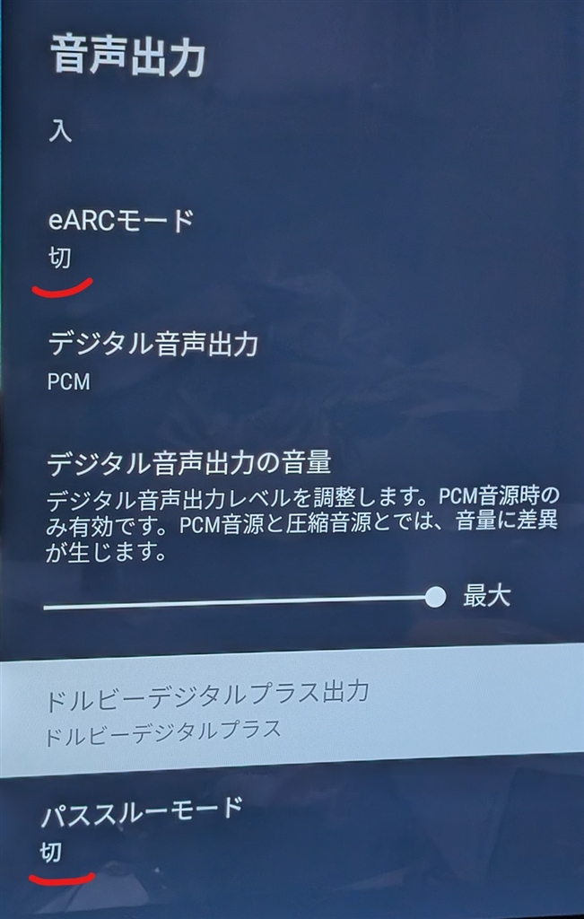 eARC切、パススルー切