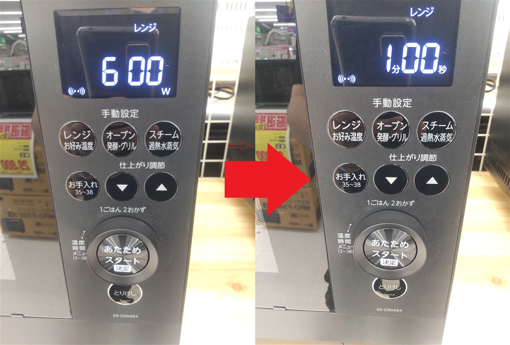 CW数と時間が同時画面で表示されない東芝「ER-D90A」