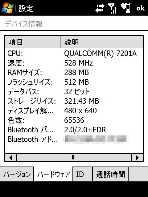 『CPU や速度、フラッシュのサイズ、解像度などがわかります』HTC Touch Pro X05HT SoftBank WKFANさんのクチコミ掲示板画像2/4