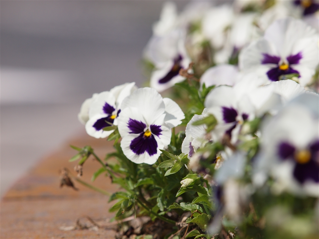 道端の花壇に咲いていたパンジー
