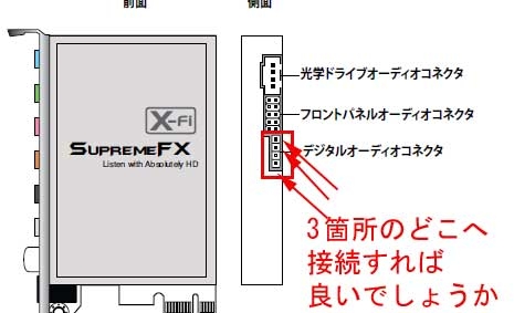 『X-Fiの3箇所のピンのどこへS/P DIFを接続すべきでしょうか』ASUS Rampage II Extreme 田舎ものaaさんのクチコミ掲示板画像1/1