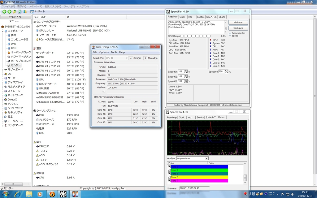 『温度表示』ASUS P6T Deluxe ヒエルさんのクチコミ掲示板画像1/1