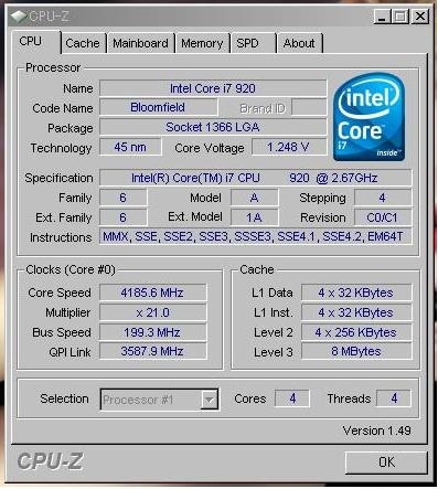 『1.248v 4185MHz』インテル Core i7 965 Extreme Edition BOX ぴぃ☆さんのクチコミ掲示板画像1/1