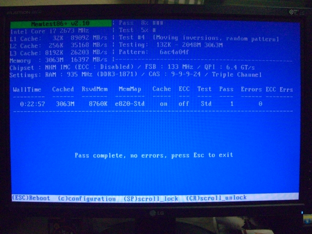 『memtest86 1PASS経過』インテル Core i7 920 BOX asikaさんのクチコミ掲示板画像3/3