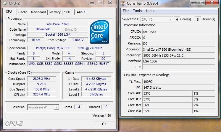 『定格時温度』インテル Core i7 920 BOX ちゃーびたんさんのクチコミ掲示板画像1/2