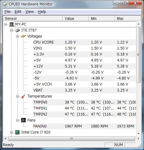 『HWMonitor』インテル Core i7 920 BOX HD素材さんのクチコミ掲示板画像1/1
