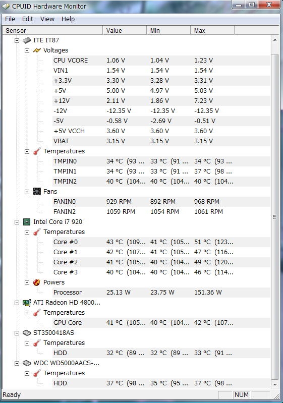 『cpuid hardware monitor』インテル Core i7 920 BOX ξ^_^ξさんのクチコミ掲示板画像2/2