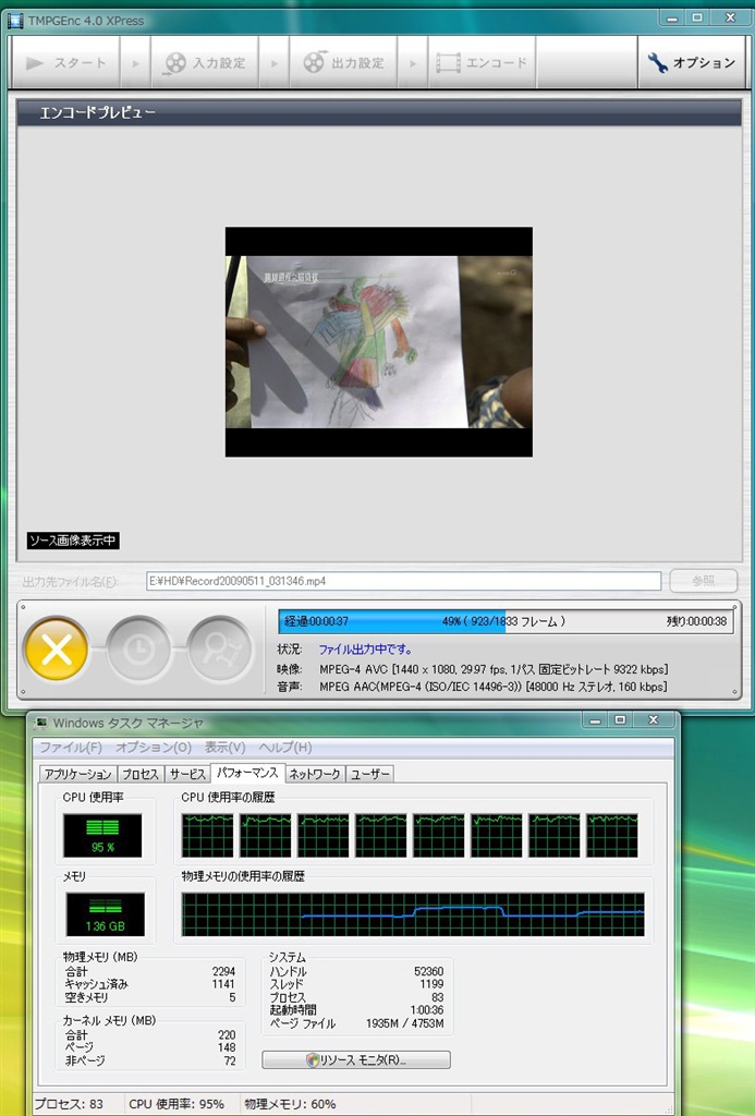 『TMPGEnc4.0XPress Mpeg4AVC』インテル Core i7 920 BOX Solareさんのクチコミ掲示板画像1/1