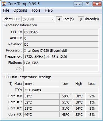 『Core Temp』インテル Core i7 920 BOX グリーンピースさんのクチコミ掲示板画像1/2