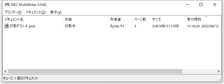 印刷キュー 内容です。