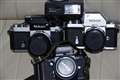 自慢のニコン6兄弟です。D3-Xには14〜24mmf2.8。D300には85mmf1.4.F5にはシグマ28〜70mmf2.8か24mmf2.8.F3には50mmf1.4.F2には50mmF2.0.Fには28mmF2.8をそれぞれ装着しています。D3-Xは購入間もない為になかなか持ち出すチャンスがありません。正直散歩にはF3モードラ無しが一番楽です。まず失敗が無いです、それに一番軽いから?