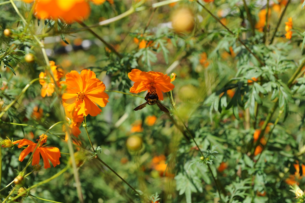 黄色に溶け込むクマバチ