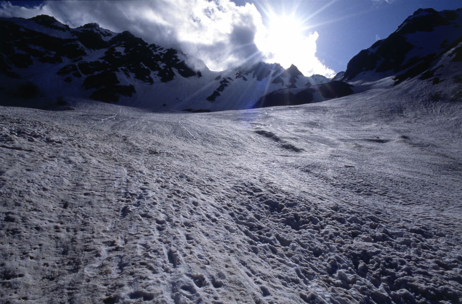 残雪の穂高岳 ニコンFE2 24mm