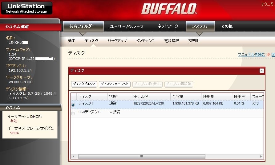 バッファロー LinkStation LS-XH500L たんれいさんのクチコミ掲示板画像2/2