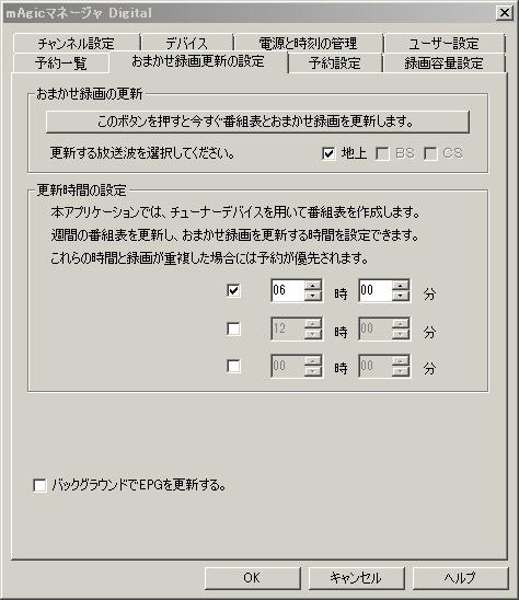 おまかせ録画の更新設定